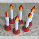 Een mooie vilten kaars in een houten staander die met vilt , hulstblaadjes en kraaltjes versiert is. Het geheel is ca. 10 cm. groot.